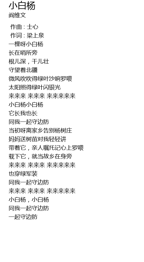 | Song | 小白杨 |