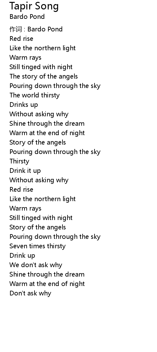 | 作词 : Bardo Pond | |