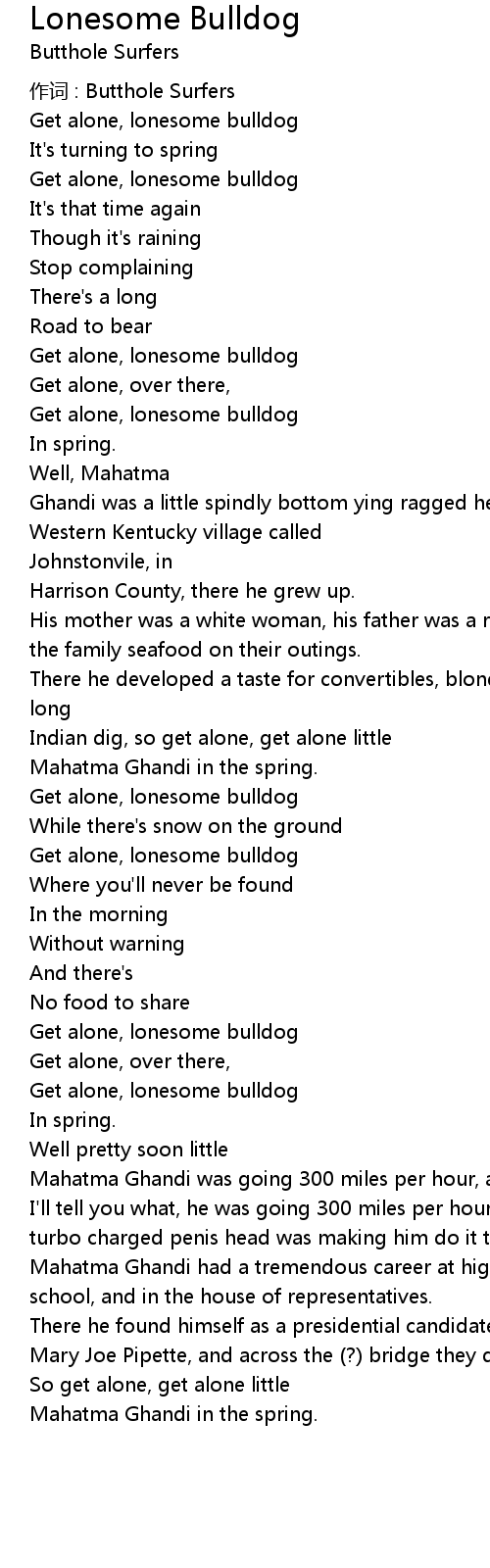 | Get alone, lonesome bulldog | |