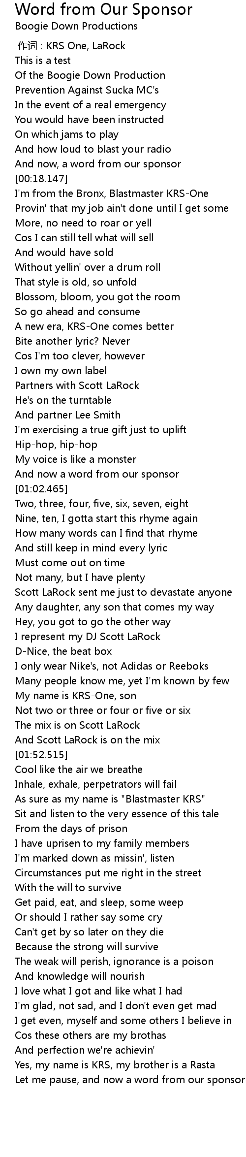 | [00:00.00] | 作词 : KRS One, LaRock |