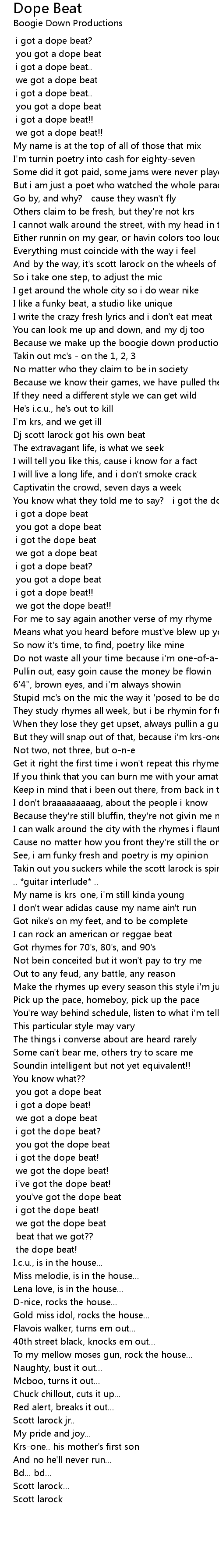 | I write the crazy fresh lyrics and i don' t eat meat | |