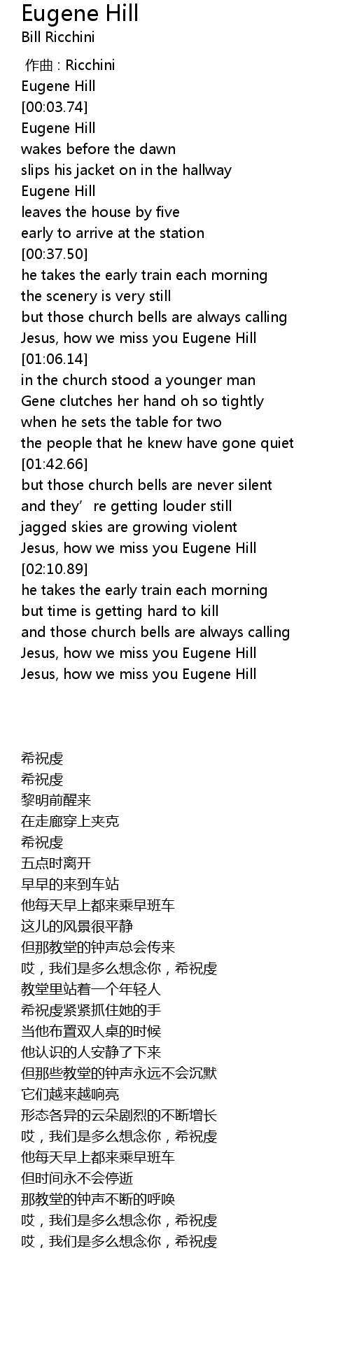 | [03:05.67] | Jesus, how we miss you Eugene Hill |