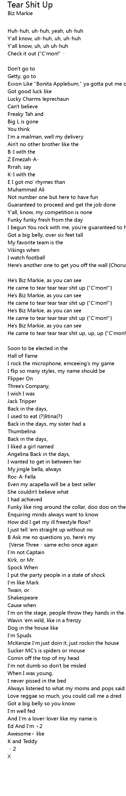 He came to tear tear tear shit up, up, up {"C'mon!"} [Verse Two - with the same echo] |