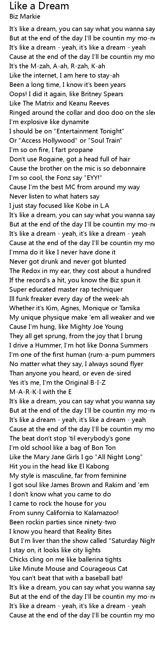 | [00:05.87] | It's like a dream, you can say what you wanna say about me |