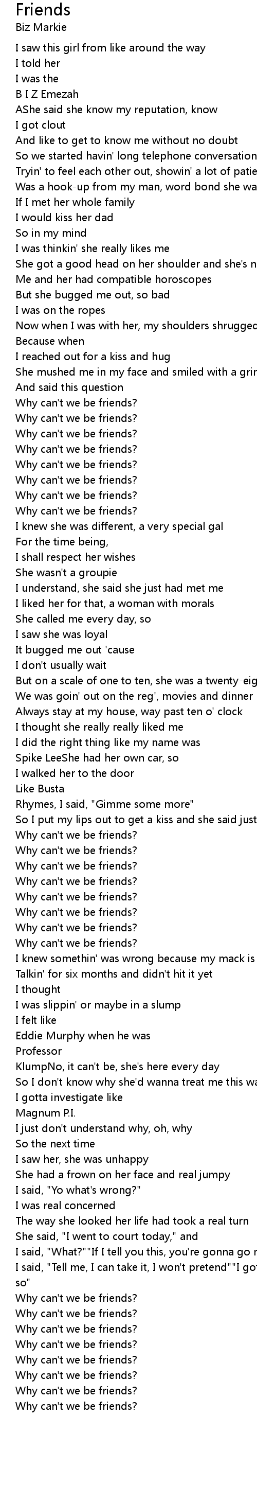 Why can't we be friends? |