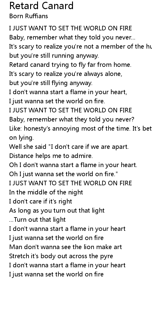 I JUST WANT TO SET THE WORLD ON FIRE |