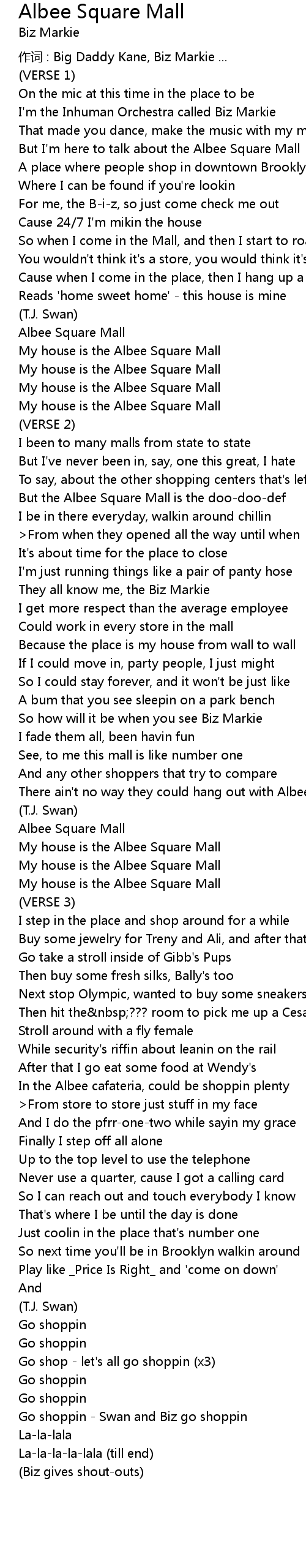 | Song | Albee Square Mall |