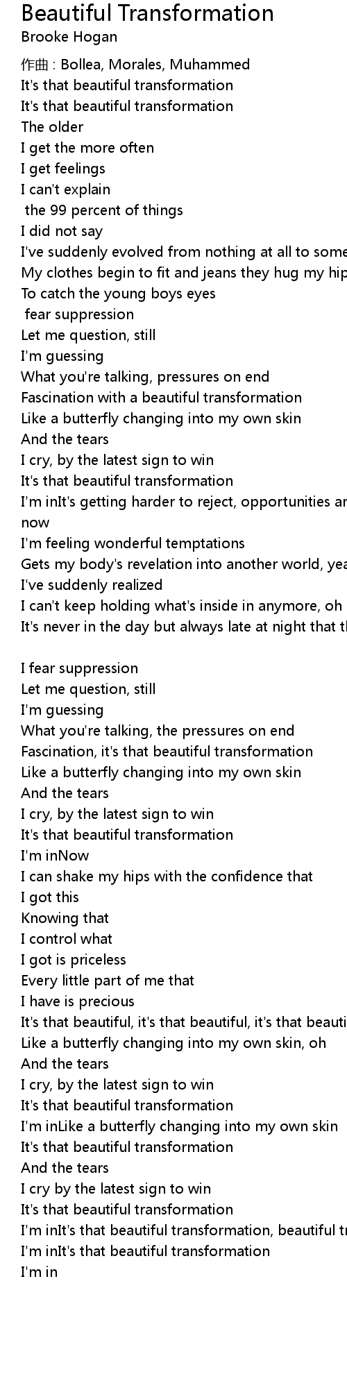 | I' m inIt' s that beautiful transformation, beautiful transformation | |