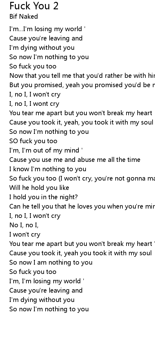 So fuck you too (I won't cry, you're not gonna make me, you mother) |