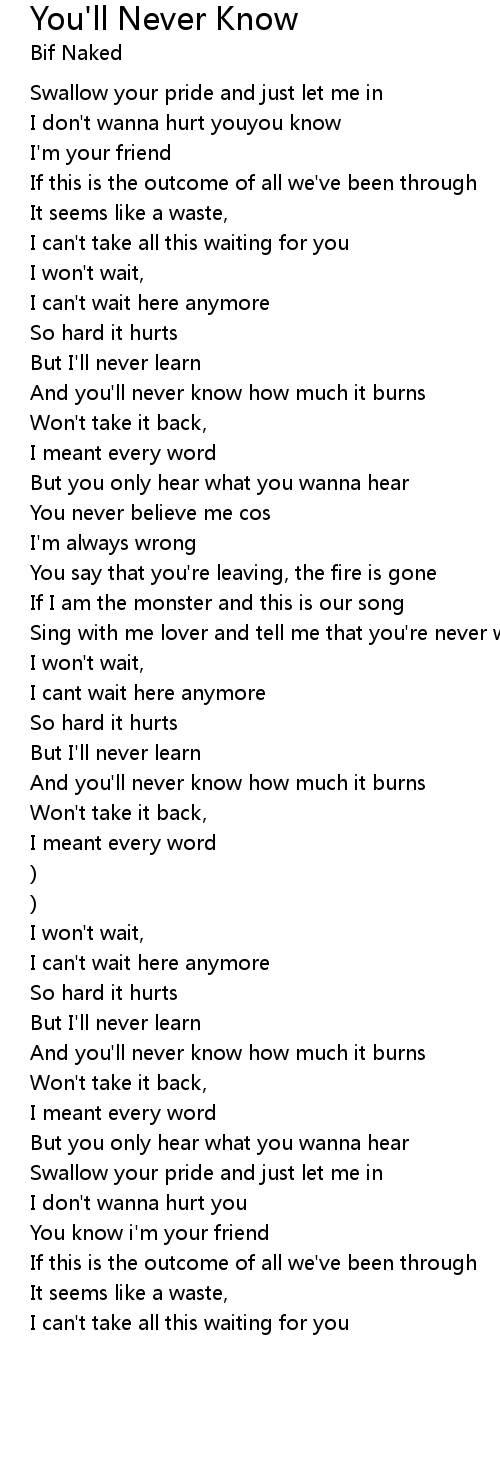 But you only hear what you wanna hear(I'll never learn [x6]) |