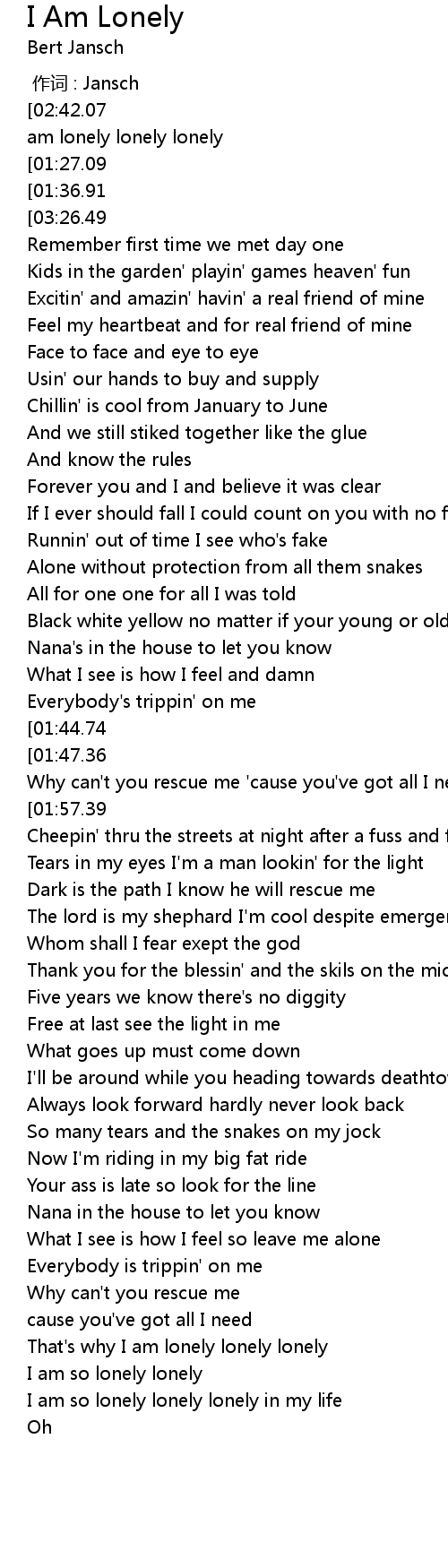 | [02:47.08][01:27.09][00:24.50][00:04.50] | I am lonely lonely in my life |