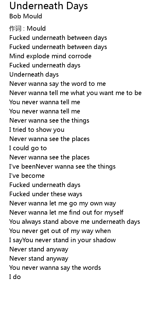 | Underneath days | |