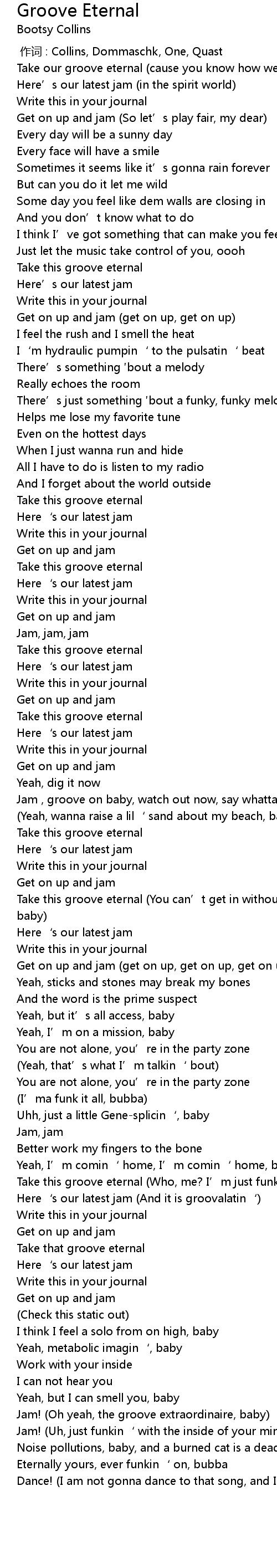 | [03:49.92] | Take this groove eternal (You can’t get in without your Funk Card, baby) |
