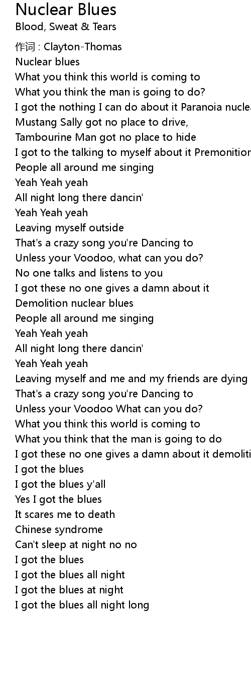 | I got the nothing I can do about it Paranoia nuclear blues | |