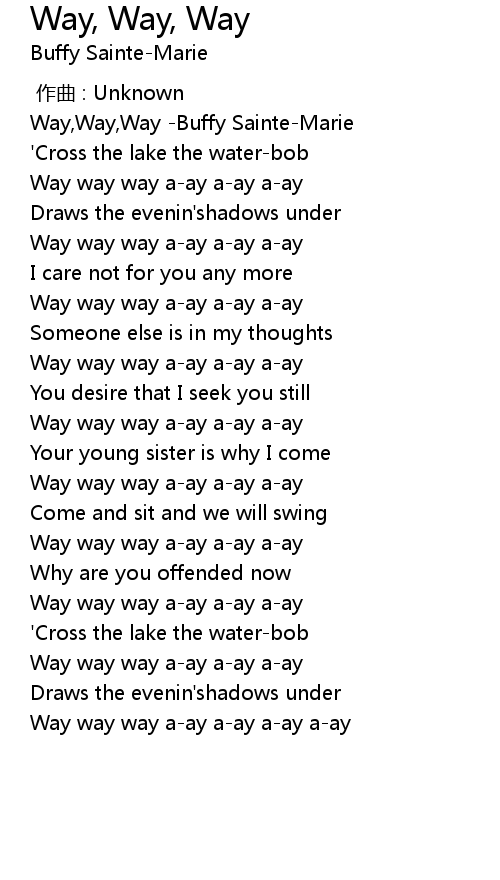 | [00:00.56] | Way,Way,Way -Buffy Sainte-Marie |
