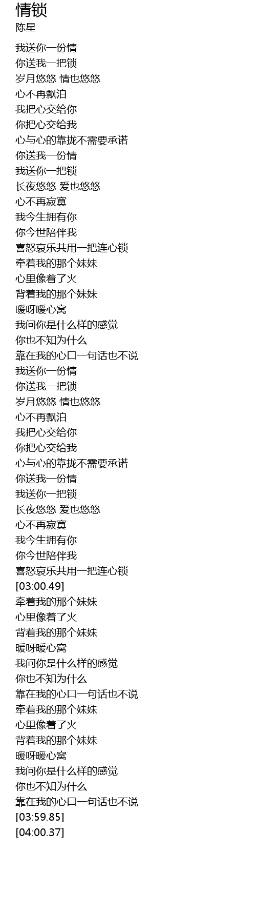| [00:46.42] | wǒ sòng nǐ yī bǎ suǒ |