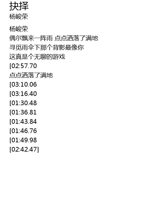 | [03:42.27][01:49.98] | 却不知小雨是否能把你打醒 |