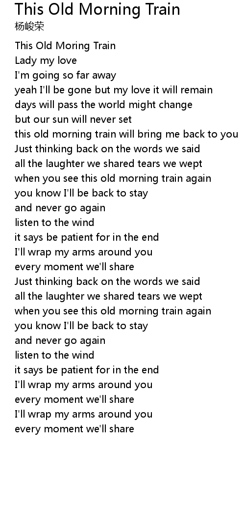 | [00:37.74] | this old morning train will bring me back to you |