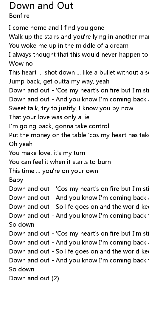 | Down and out - And you know I'm coming back again, yeah | |