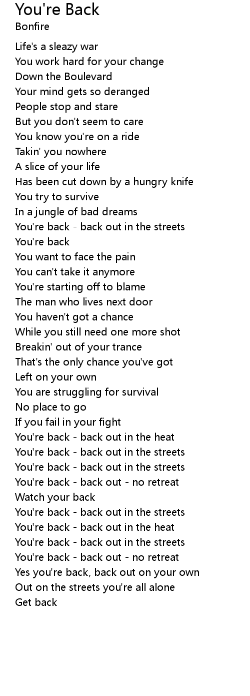You're back - back out in the streets |