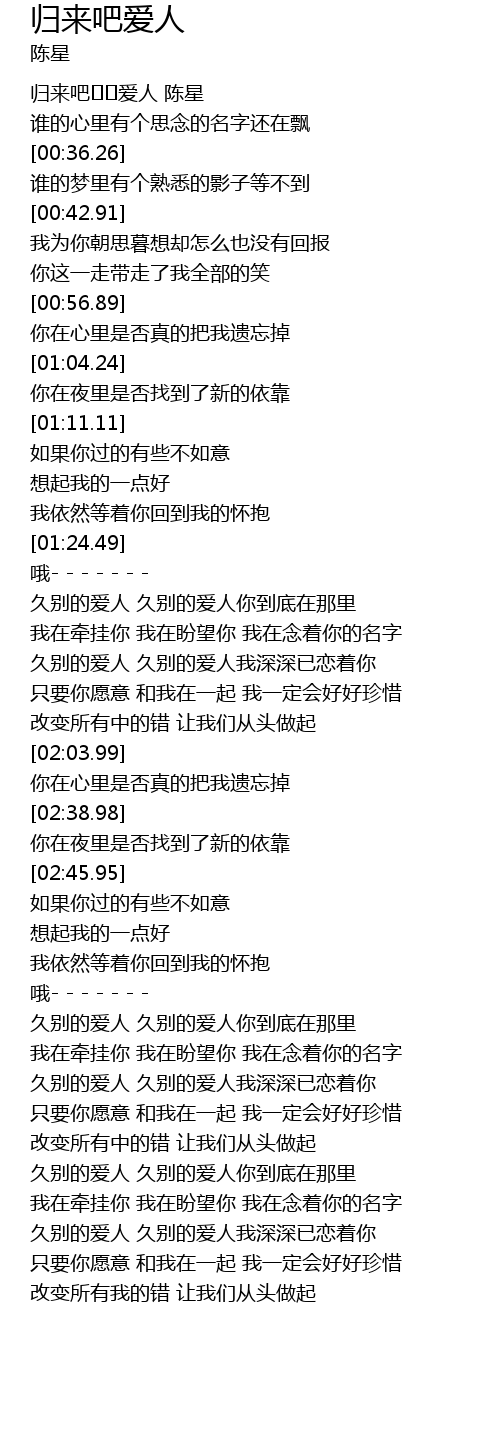 | [00:02.63] | 归来吧��爱人 陈星 |