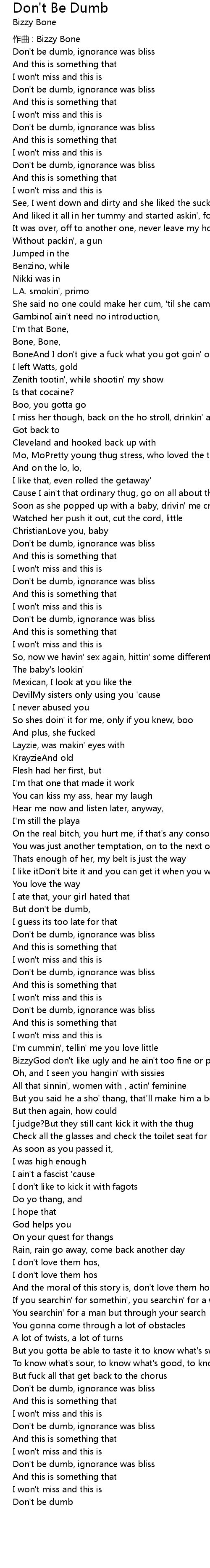 | BoneAnd I don't give a fuck what you got goin' on | |