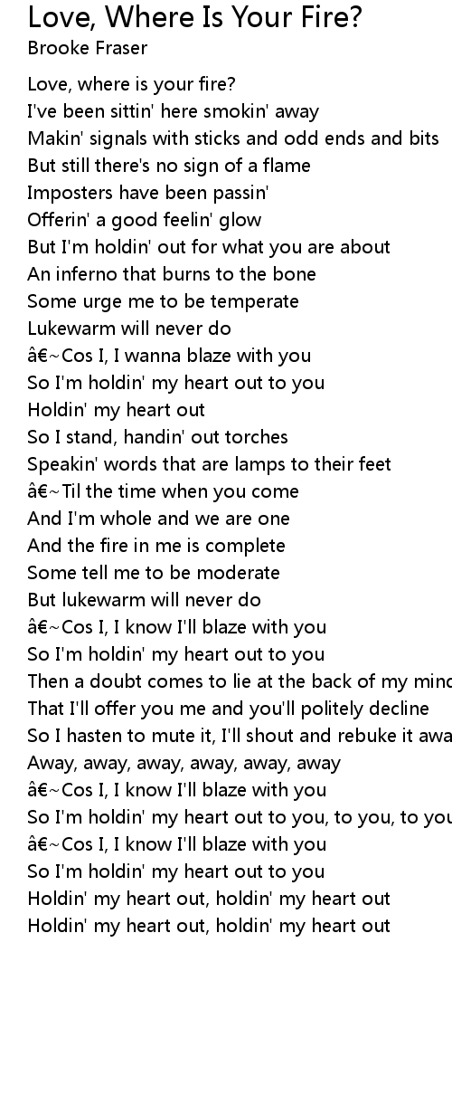 | Love, where is your fire? | |