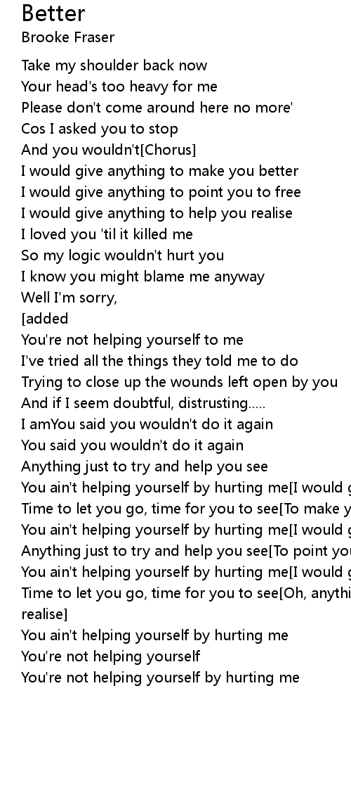 You ain't helping yourself by hurting me[I would give anything] |