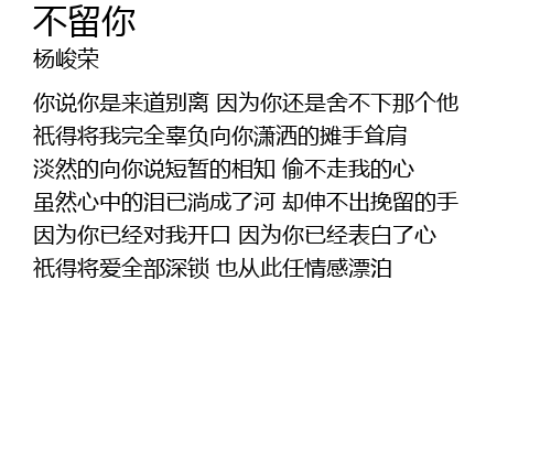 | 虽然心中的泪已淌成了河 却伸不出挽留的手 | |