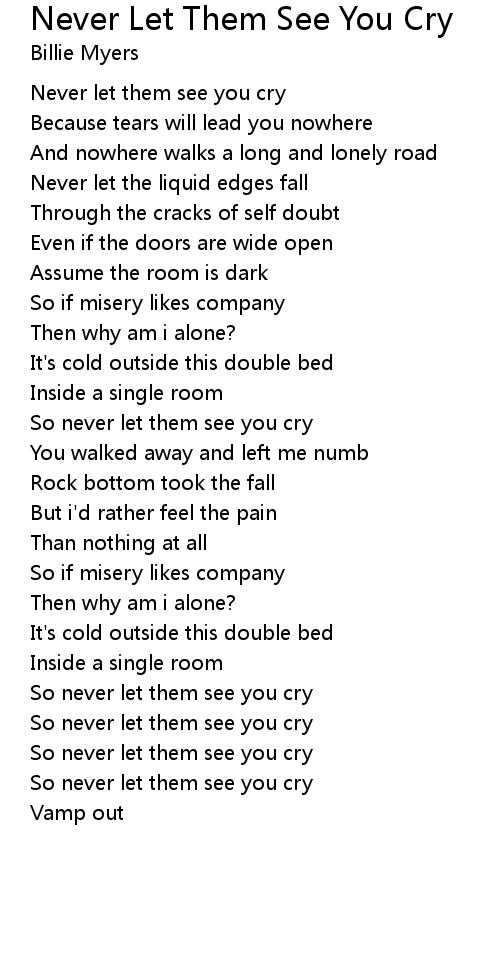 So never let them see you cry |