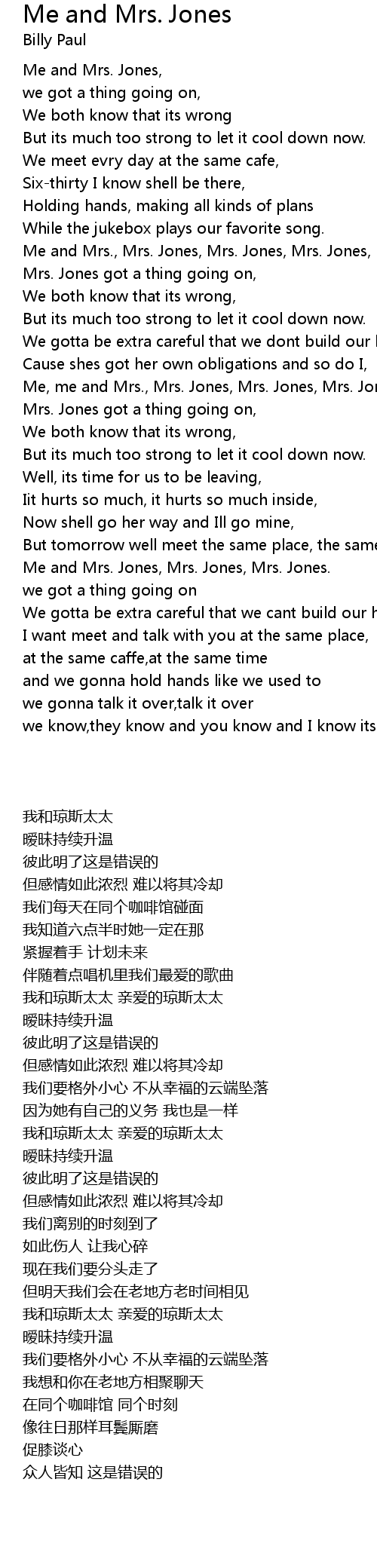 Me and Mrs., Mrs. Jones, Mrs. Jones, Mrs. Jones, |