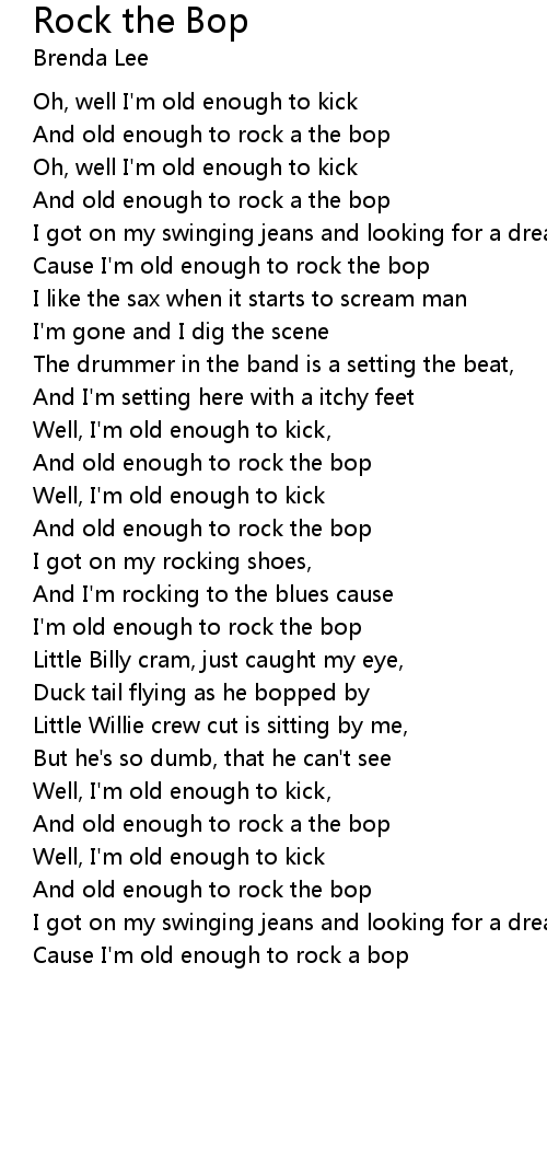 Cause I'm old enough to rock the bop |