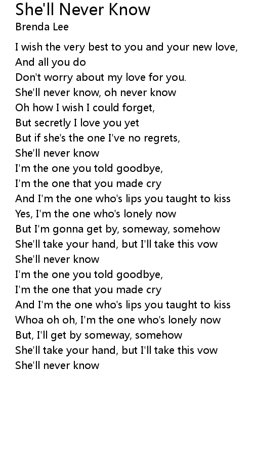 She'll never know, oh never know |