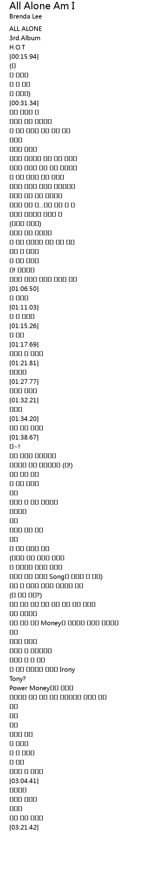 | [02:33.96] | 뭐니 뭐니 해도 Money가 최고라고 말하는 너희들은 뭐니 |