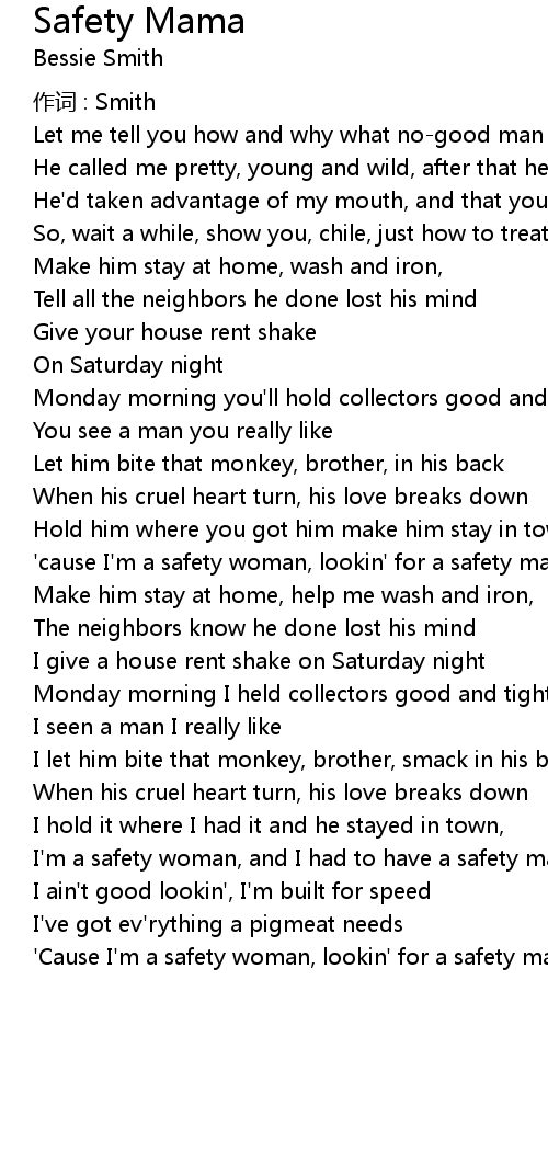 | ' Cause I' m a safety woman, lookin' for a safety man |