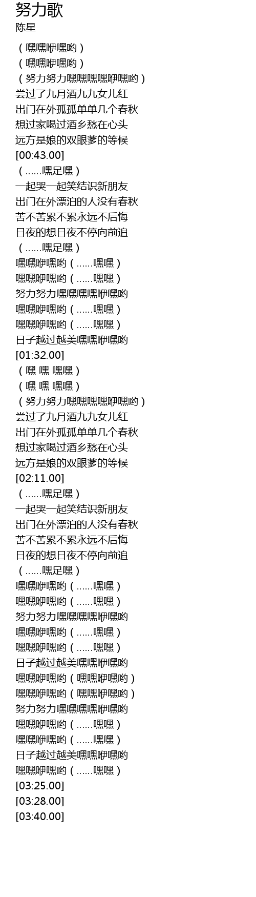 | [03:00.00] | 嘿嘿咿嘿哟(嘿嘿咿嘿哟) |