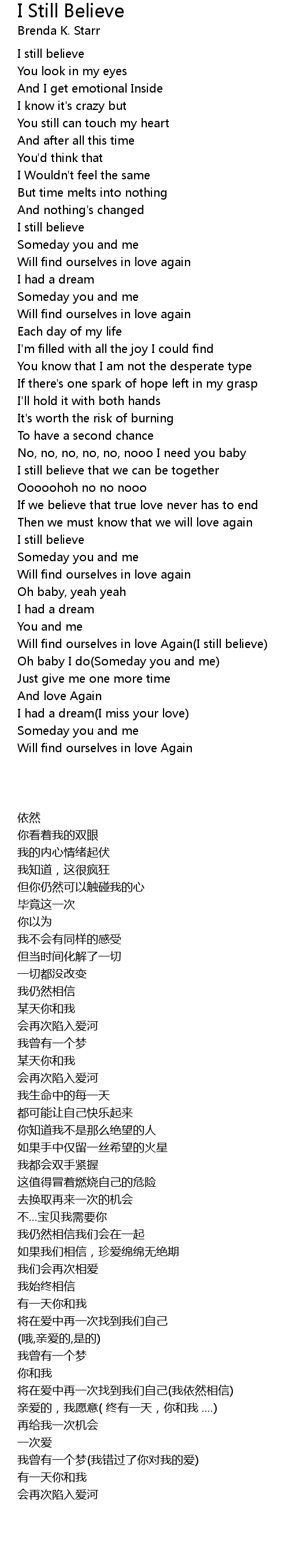 I still believe |