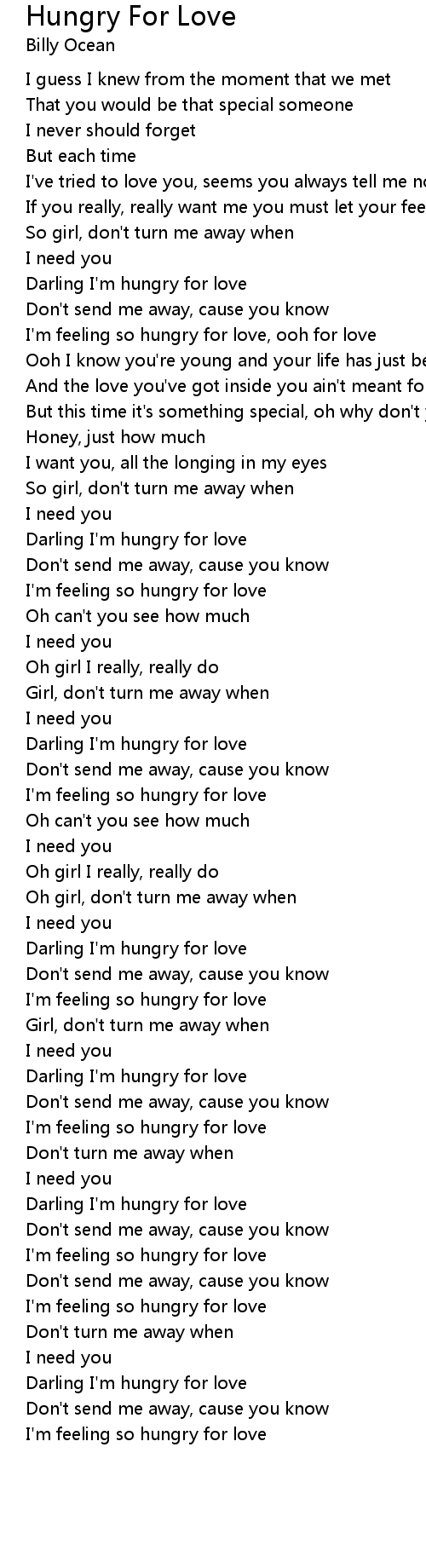 Darling I'm hungry for love |