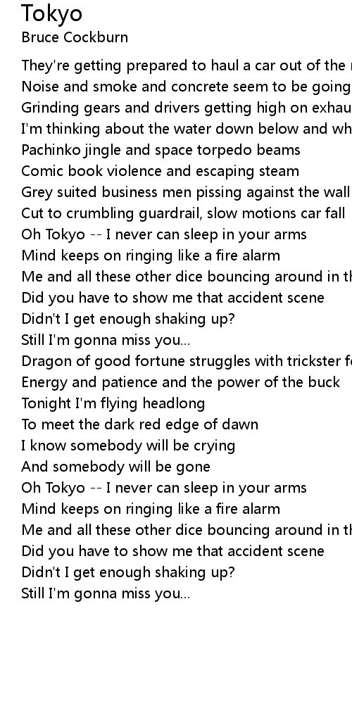 Oh Tokyo -- I never can sleep in your arms |