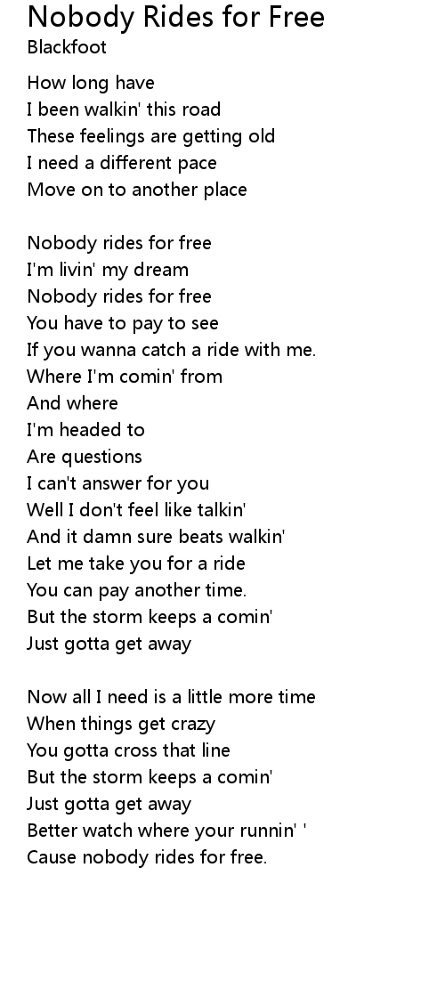 Cause nobody rides for free. |
