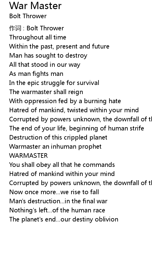 | 作词 : Bolt Thrower | |