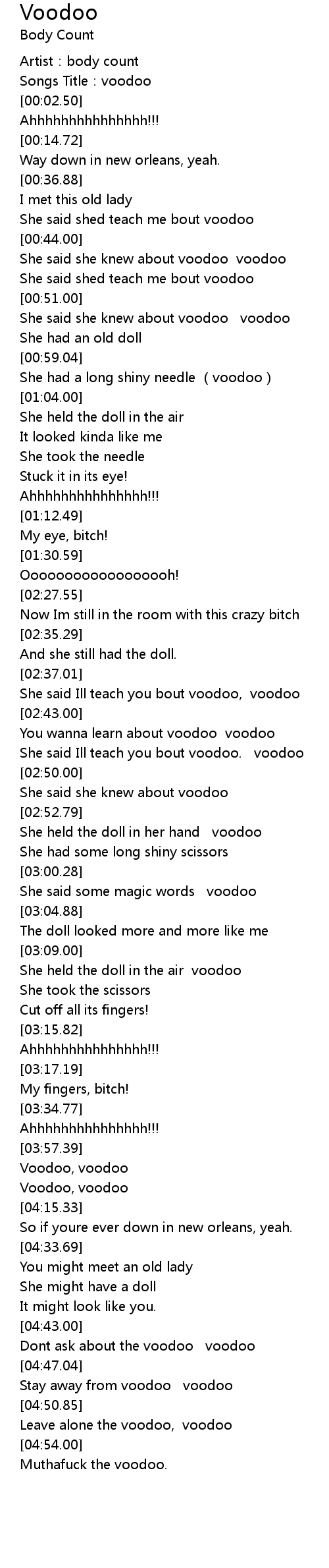 | [02:47.48] | She said Ill teach you bout voodoo. voodoo |