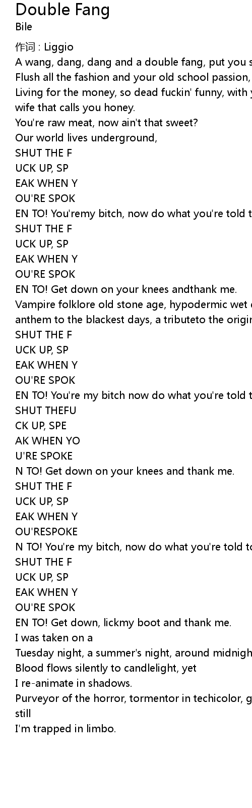 | EN TO! You'remy bitch, now do what you're told to do. | |