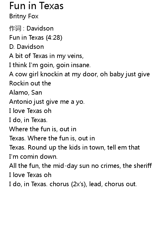 | Song | Fun in Texas |