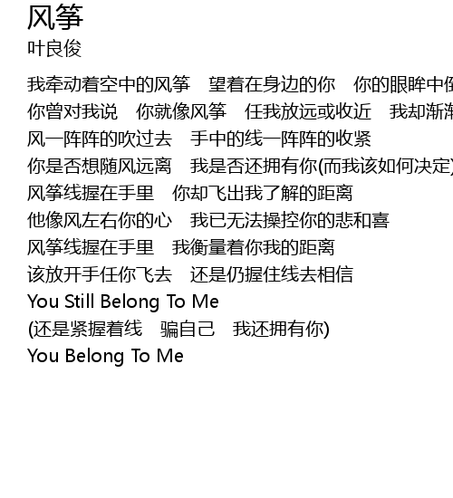 | 你曾对我说 你就像风筝 任我放远或收近 我却渐渐地看不清你身影 | |