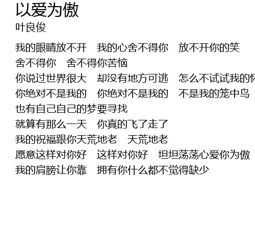 | 愿意这样对你好 这样对你好 坦坦荡荡心爱你为傲 | |