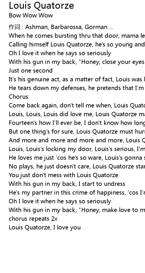 | Louis, Louis, Louis did love me, Louis Quatorze made love to me | |