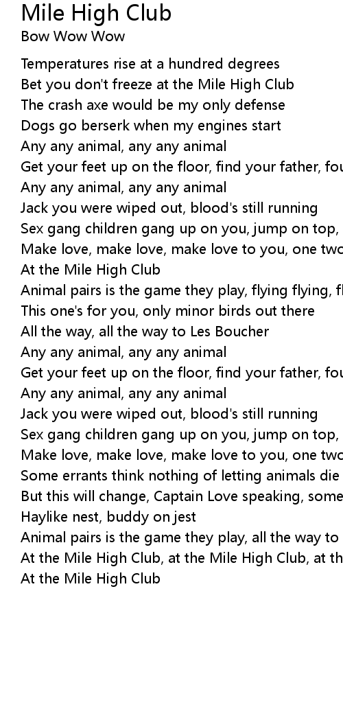 At the Mile High Club, at the Mile High Club, at the Mile High Club |
