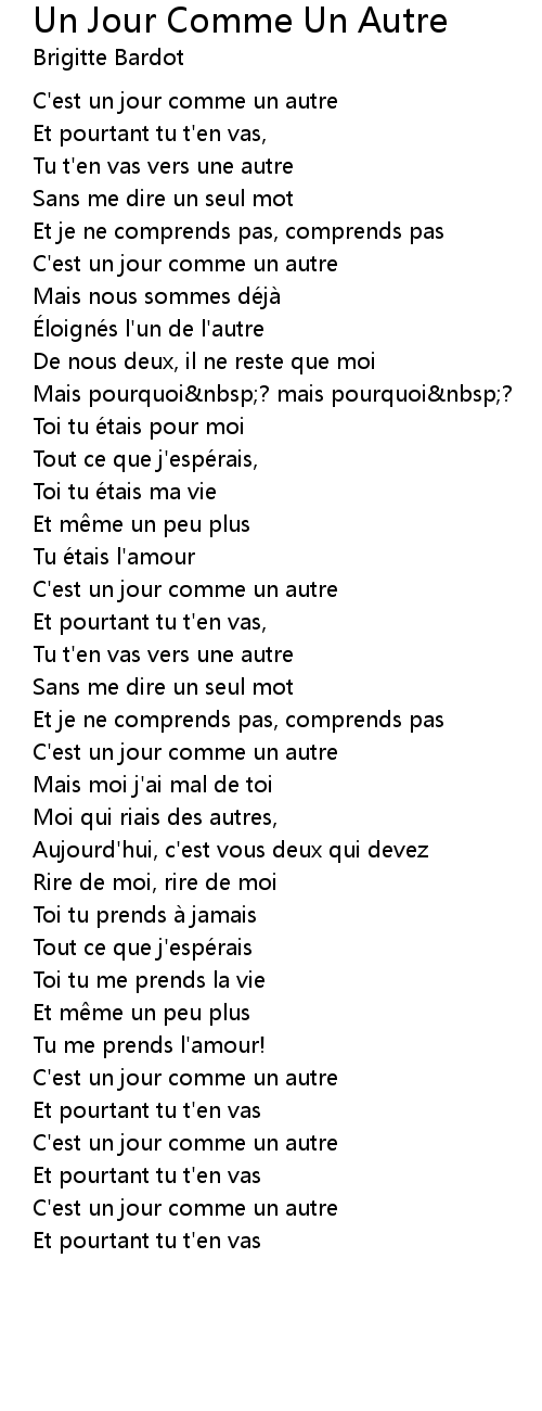 | Song | Un Jour Comme Un Autre |