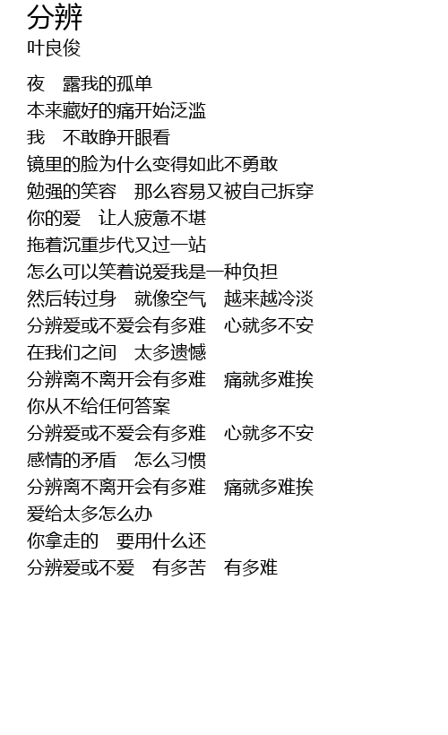 | 分辨爱或不爱 有多苦 有多难 |